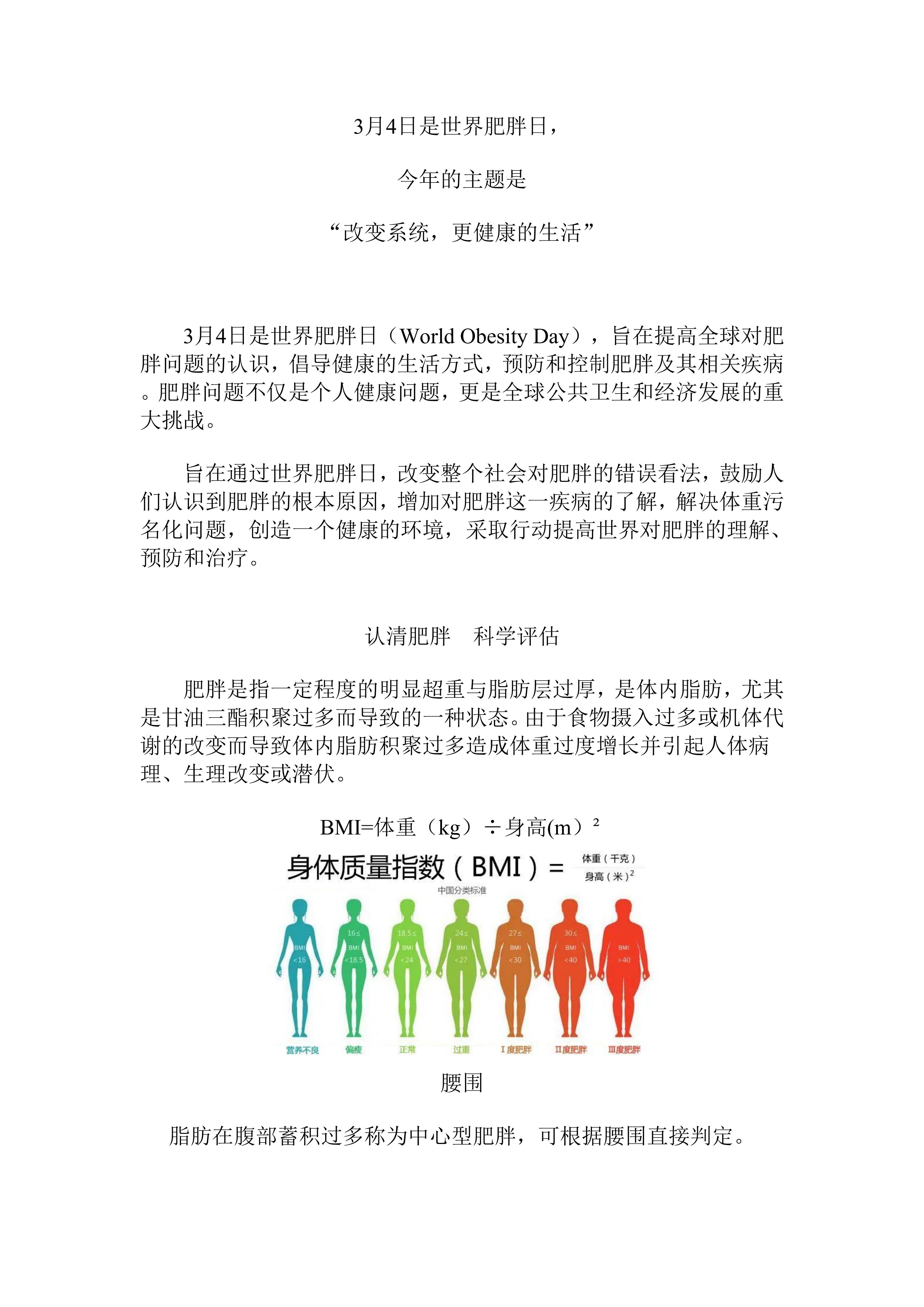[健康科普]告别“世界肥胖日”,拥抱“健康体重日”!