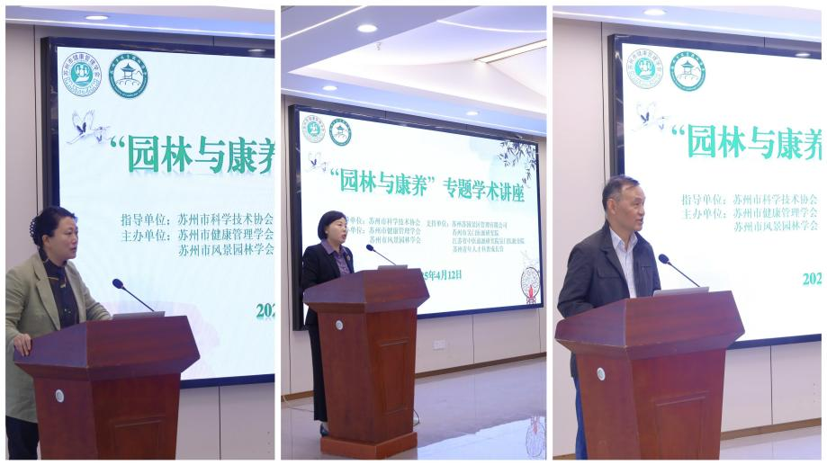 开幕式上,苏州市健康管理学会副会长周红、苏州市风景园林学会执行理事长周苏宁分别上台致辞。他们指出此次讲座为学会会员搭建跨学科交流的优质平台,是苏州园林生态智慧与现代健康管理理念融合的首次尝试,从苏州深厚的历史文化底蕴切入,将苏州园林比作凝固的诗,吴门医派喻为流淌的歌,生动诠释了两者在江南文化脉络中的交相辉映。苏州园林那 “虽由人作,宛自天开” 的艺术境界,与吴门医派 “仁心仁术”“整体观念” 的理念不谋而合,恰似园林元素间的和谐共生,展现出江南文化园林雅致、守正创新等独特魅力。