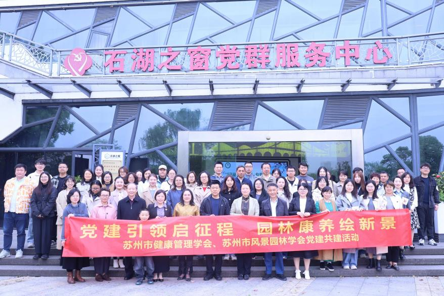 2025 年 4 月 12 日,由苏州市健康管理学会与苏州市风景园林学会联合主办的 “园林与康养” 专题学术讲座暨党建共建活动在苏州石湖景区游客中心二楼会议室圆满举行。 苏州市科学技术协会学会部部长吴英宁;苏州市健康管理学会副会长徐军、副会长周红,副秘书长张宇;苏州市风景园林学会执行理事长周苏宁,副理事长徐学民;各会员共70余人现场参加活动,讲座由风景园林学会秘书长程斯嘉主持。