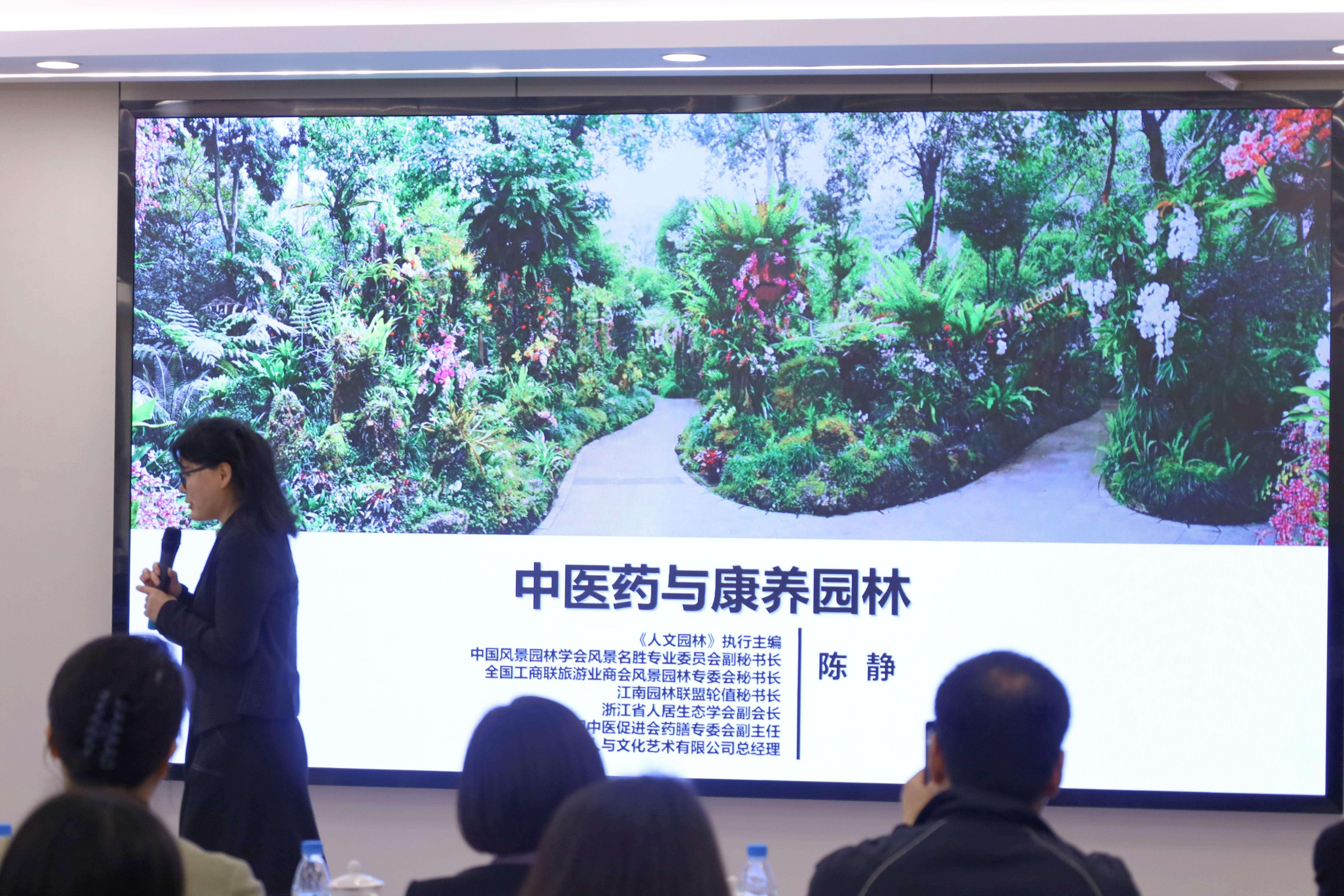 本次讲座邀请了《人文园林》杂志执行主编陈静女士、苏州市中医院副院长、苏州吴门医派研究院常务院长黄菲女士。陈静女士在风景园林与中医药疗愈体系融合领域深耕多年,其演讲主题为《中医药与康养园林》,她从多学科角度深入剖析园林环境对人体生理和心理的积极影响。通过大量详实的数据和实际案例,阐述了园林景观中的植物配置、空间布局、水体设计等要素如何作用于人的神经系统、心血管系统,进而缓解压力、降低血压、改善睡眠质量等,让听众深刻认识到园林康养背后的科学原理。同时她凭借丰富的经验和深入的研究,为大家描绘出中医药与康养园林相结合的美好蓝图。在她的讲述中,园林设计不仅只是供人观赏的景观,更能成为了滋养身心的胜地。合理配置的药用植物,不仅能美化环境,还能通过散发的自然气息调节人体机能,让人仿佛置身于一个充满生机与活力的绿色疗养空间。