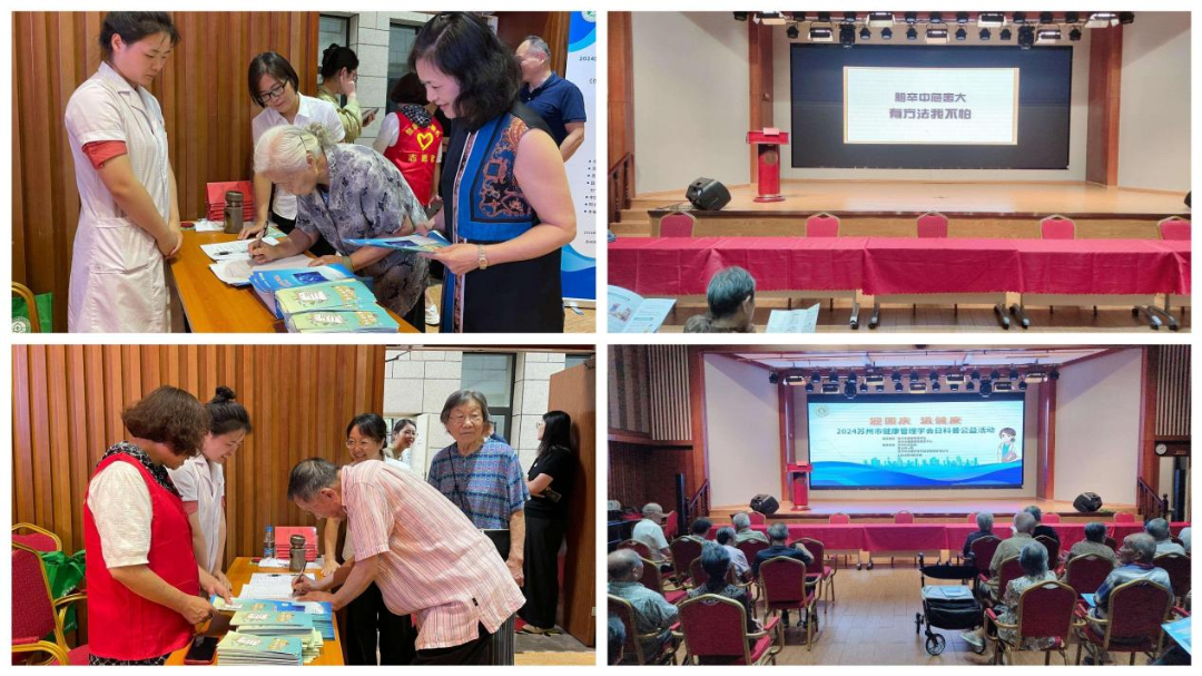 为积极响应2024年全民健康生活方式宣传月和苏州市健康管理学会日活动的倡议,结合今年宣传月活动主题和第31个世界阿尔茨海默病日的宣传主题,9月20日下午,苏州市健康管理学会联合苏大附一院、苏州市立医院、苏州市苏康养教育投资管理有限公司等会员单位在狮山怡养老年公寓成功举办了“迎国庆 送健康——苏州市健康管理学会日科普公益活动”,给怡养公寓的老年朋友们送去了健康科普宣传片、健康科普手册、健康科普讲座、健康咨询、专家义诊等系列健康活动。