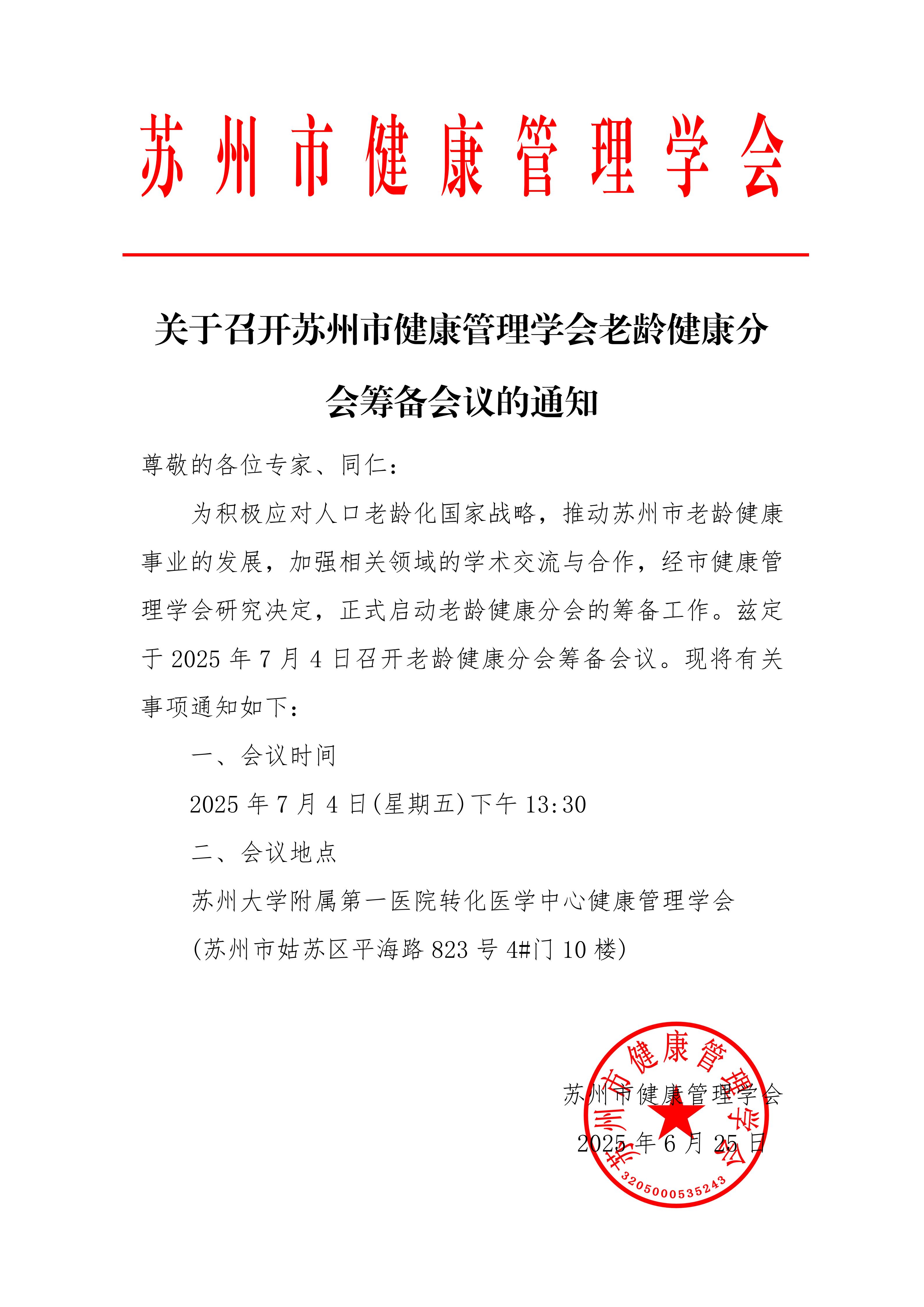 关于召开苏州市健康管理学会老龄健康分会筹备会议的通知