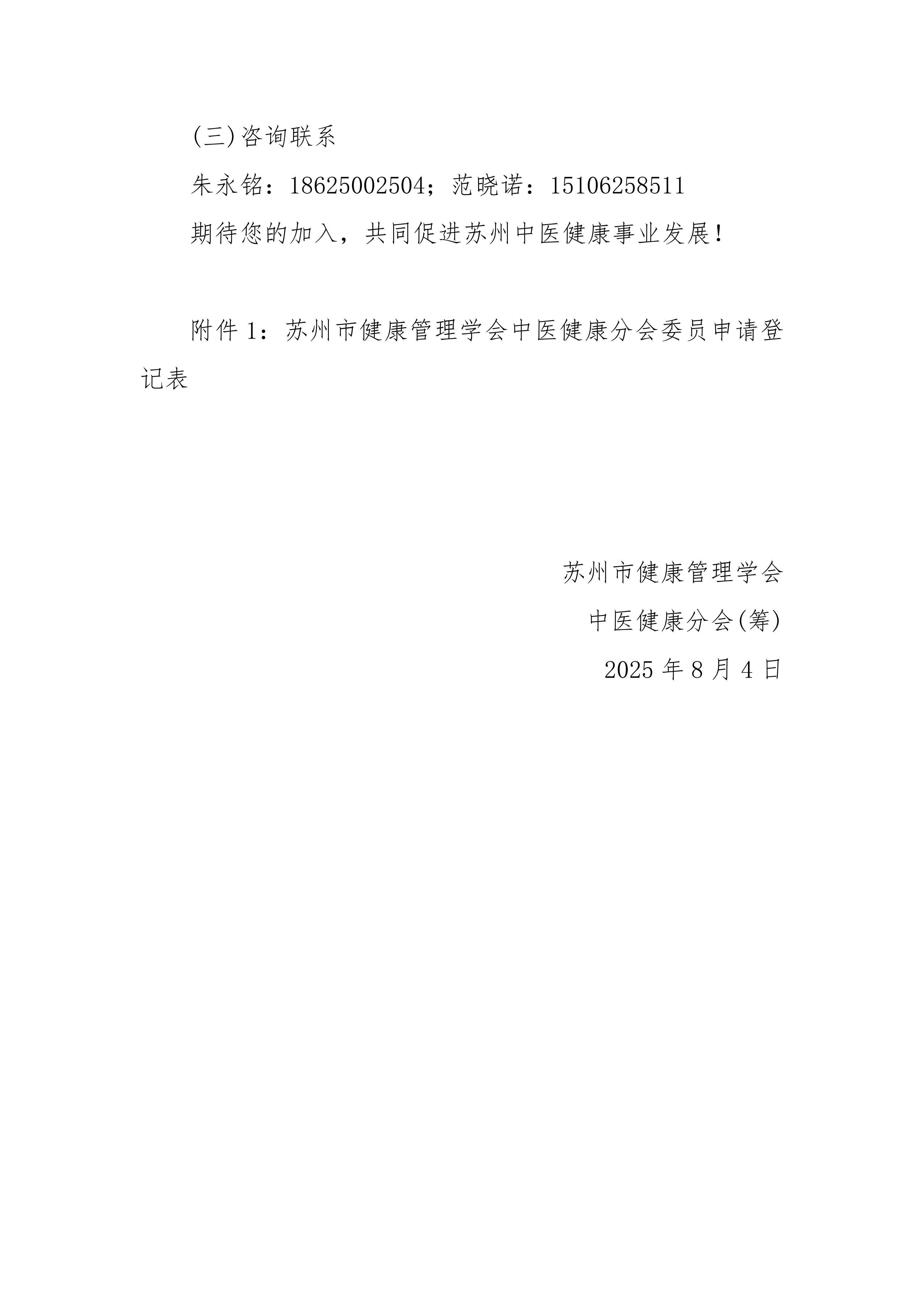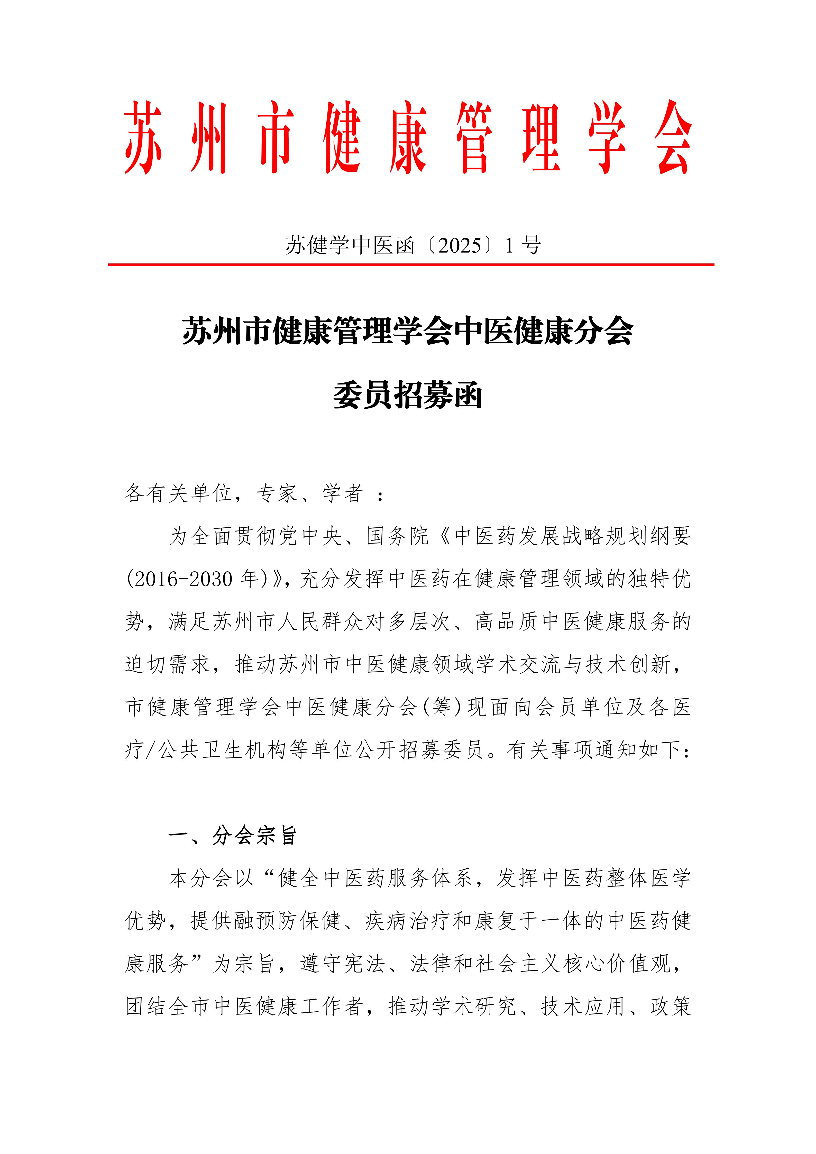 苏州市健康管理学会中医健康分会委员招募函