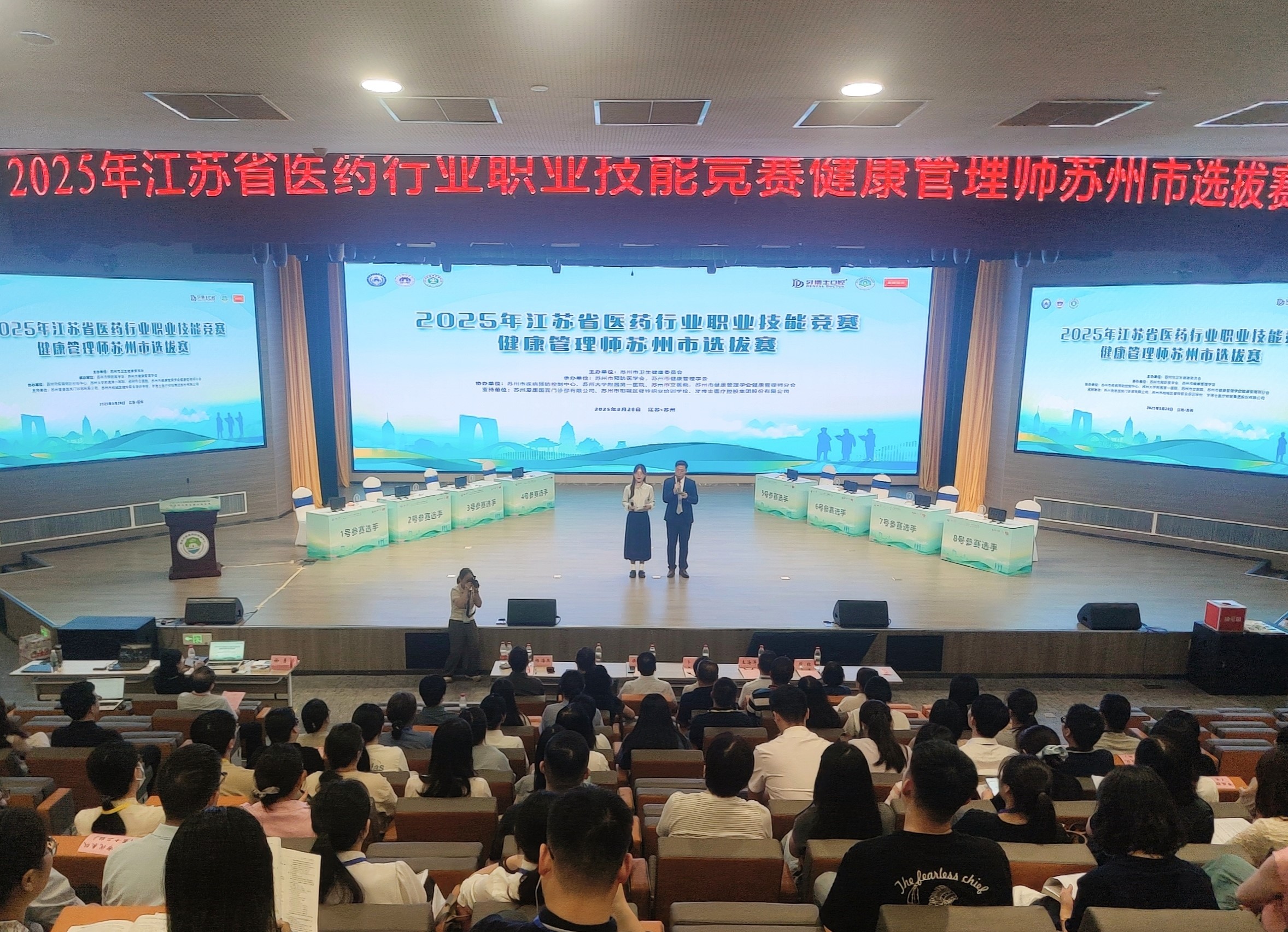 为加速培育医药行业高素质技能人才,推动健康江苏建设与医药产业高质量发展,2025 年 8 月 28 日,2025 年江苏省医药行业职业技能竞赛健康管理师项目苏州市选拔赛在苏州市疾病预防控制中心顺利举办。本次赛事由苏州市卫生健康委员会主办,苏州市预防医学会、苏州市健康管理学会承办;苏州市疾病预防控制中心、苏州大学附属第一医院、苏州市立医院、苏州市健康管理学会健康管理师分会协办;同时得到了苏州爱康国宾门诊部有限公司、苏州市相城区健铃职业培训学校、牙博士医疗控股集团股份有限公司的大力支持,来自全市 14支代表队的42名健康管理领域从业者同场竞技,展现专业风采。
