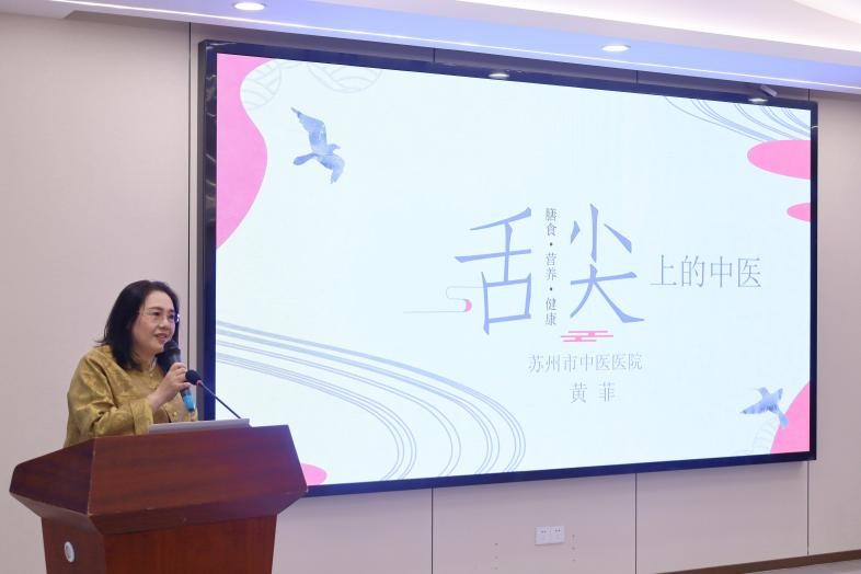 苏州市中医医院副院长黄菲教授作为吴门医派的传承者和中医领域的专家,则以《舌尖上的中医》为主题,阐述“民以食为天”,膳食是民生根本,有膳食,民得以养;有好膳食,民得以康养。根据24节气以及食材的四气五味,配合适当的药材,结合烹调技艺,制作成“色、香、味、美”俱佳的时令药膳,结合丰富的临床案例,阐述了 “药食同源” 的理念。她指出,日常饮食中蕴含着中医养生的智慧,合理搭配食材,就能在享受美食的同时达到保健养生的目的。例如,针对不同体质的人群,选择适宜的食材进行调理,能有效预防和改善多种疾病,让健康融入日常生活的点滴之中。
